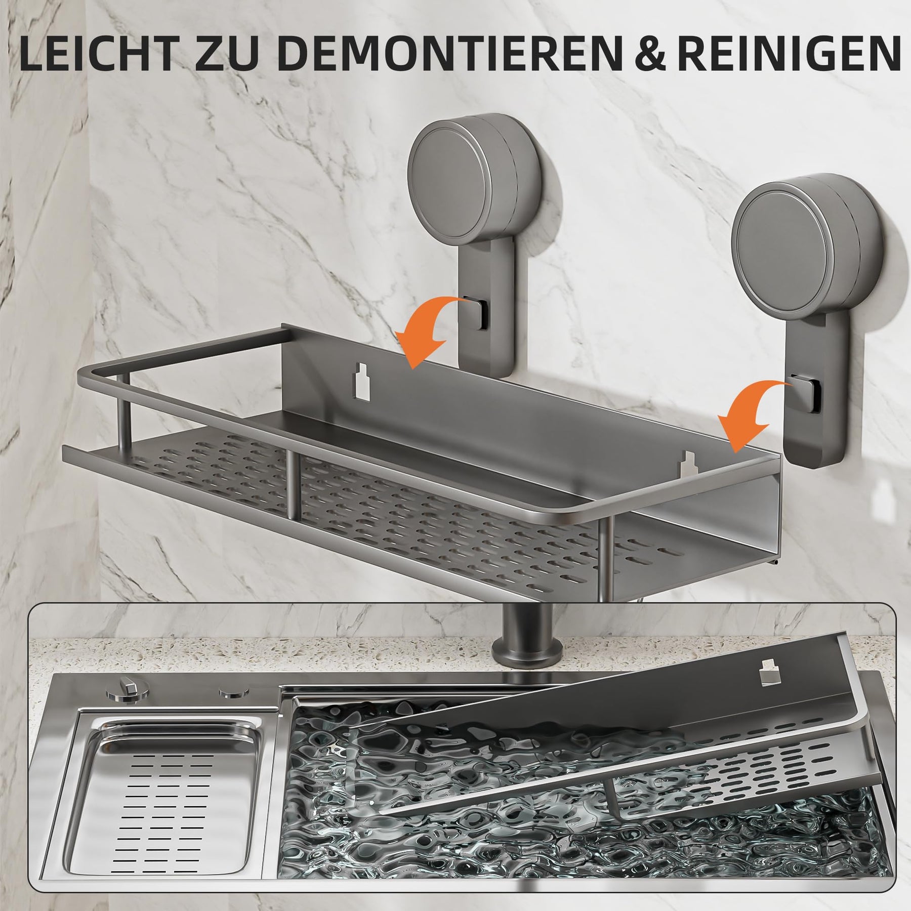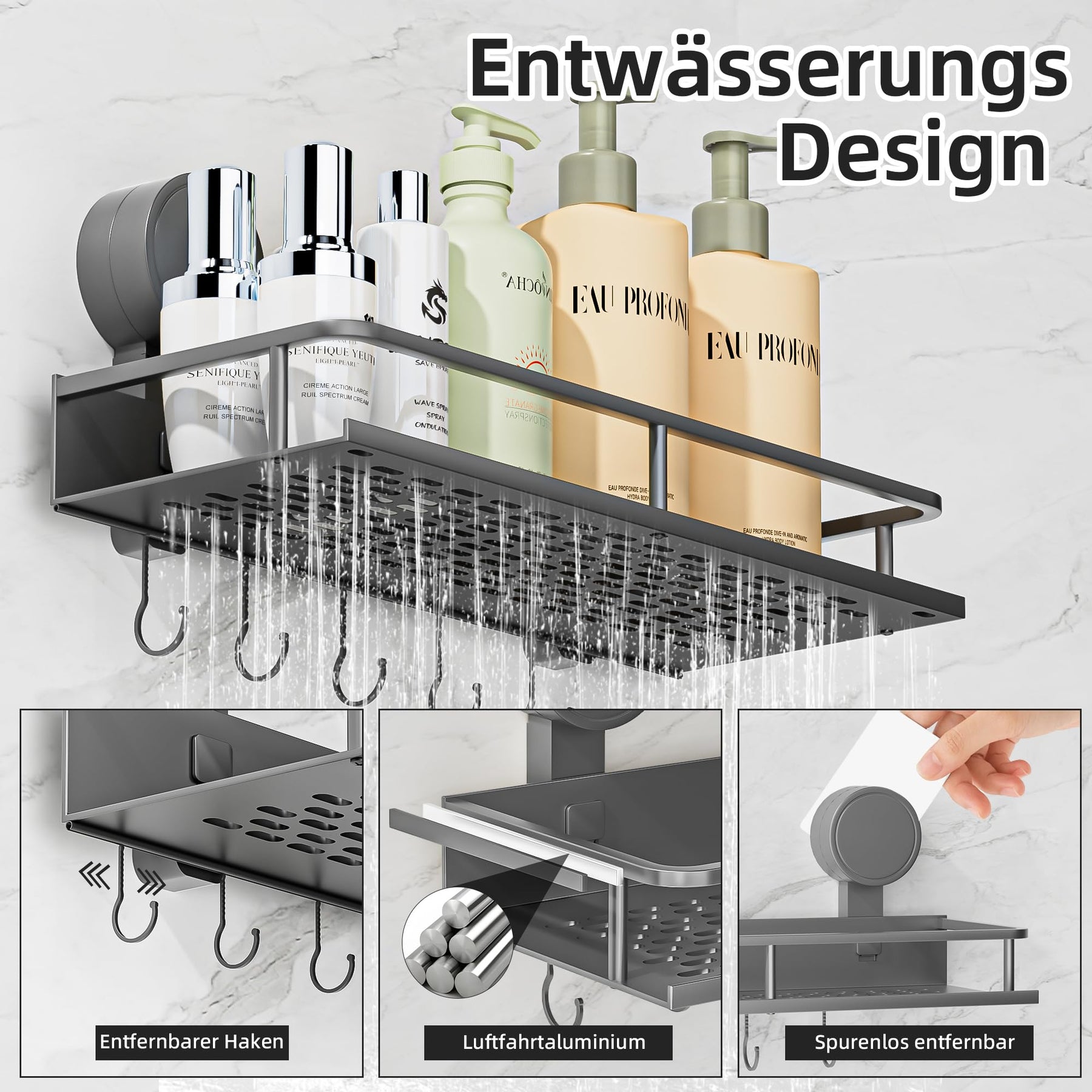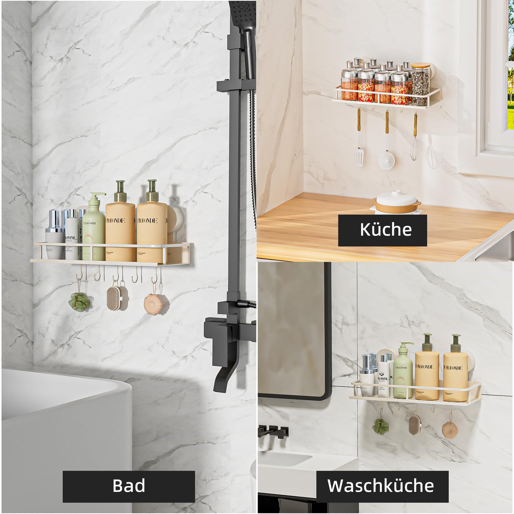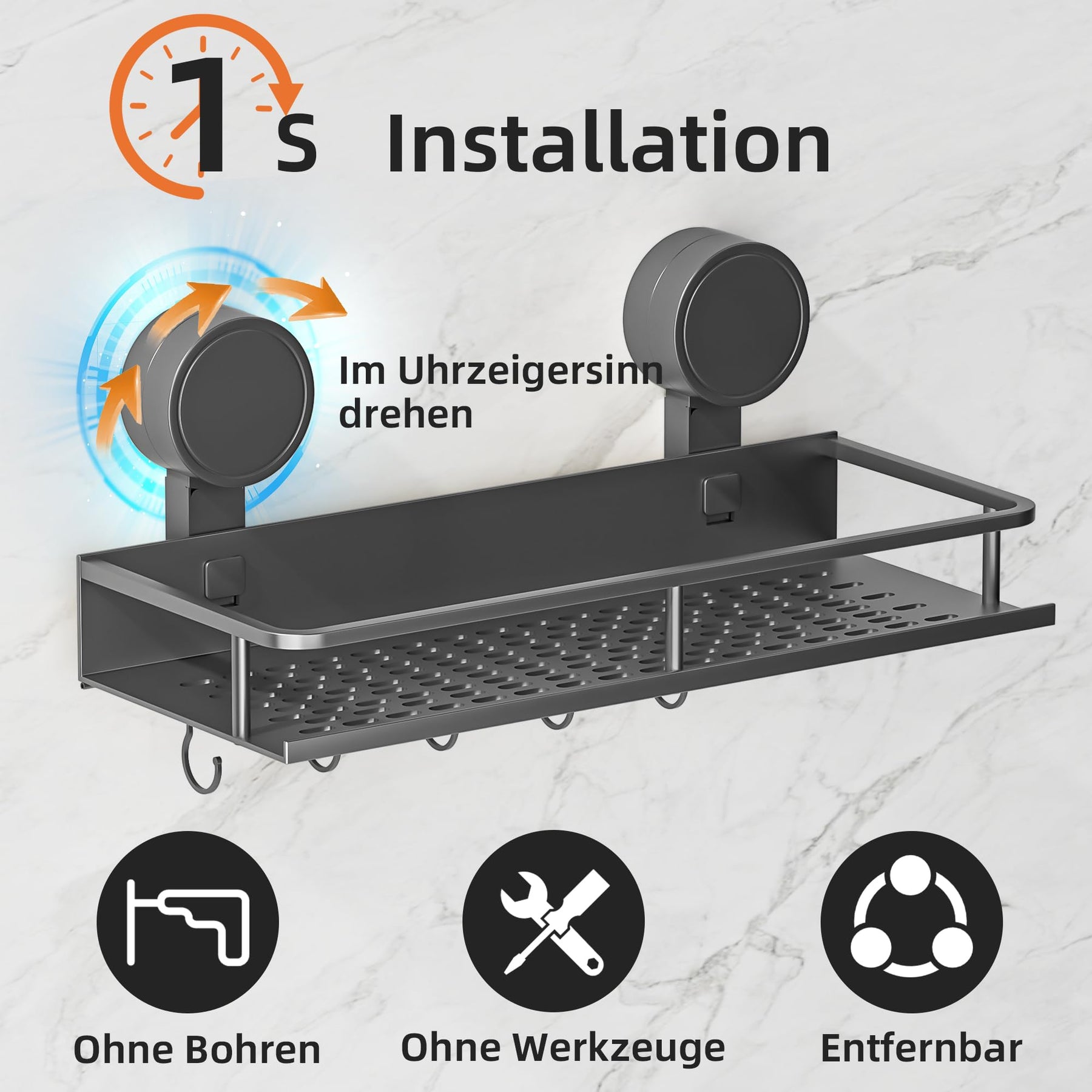 Suction Cup No Drilling Shower Shelf, 10 kg Load Capacity Bathroom Shelf for Shampoo Conditioner, Removable and Rustproof Bathroom Organiser with Large Capacity, White