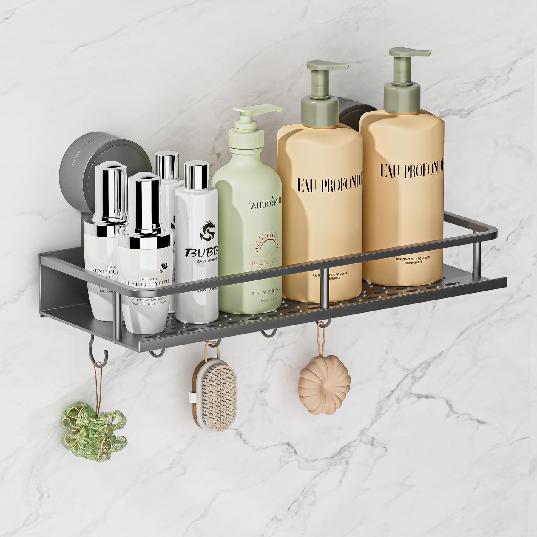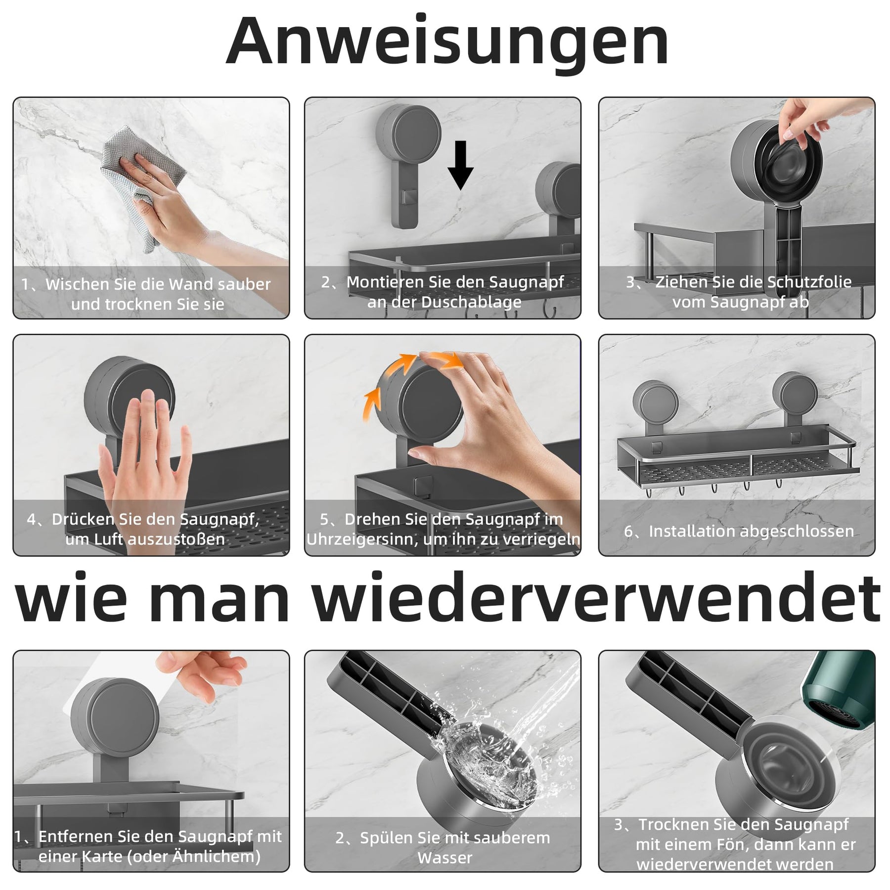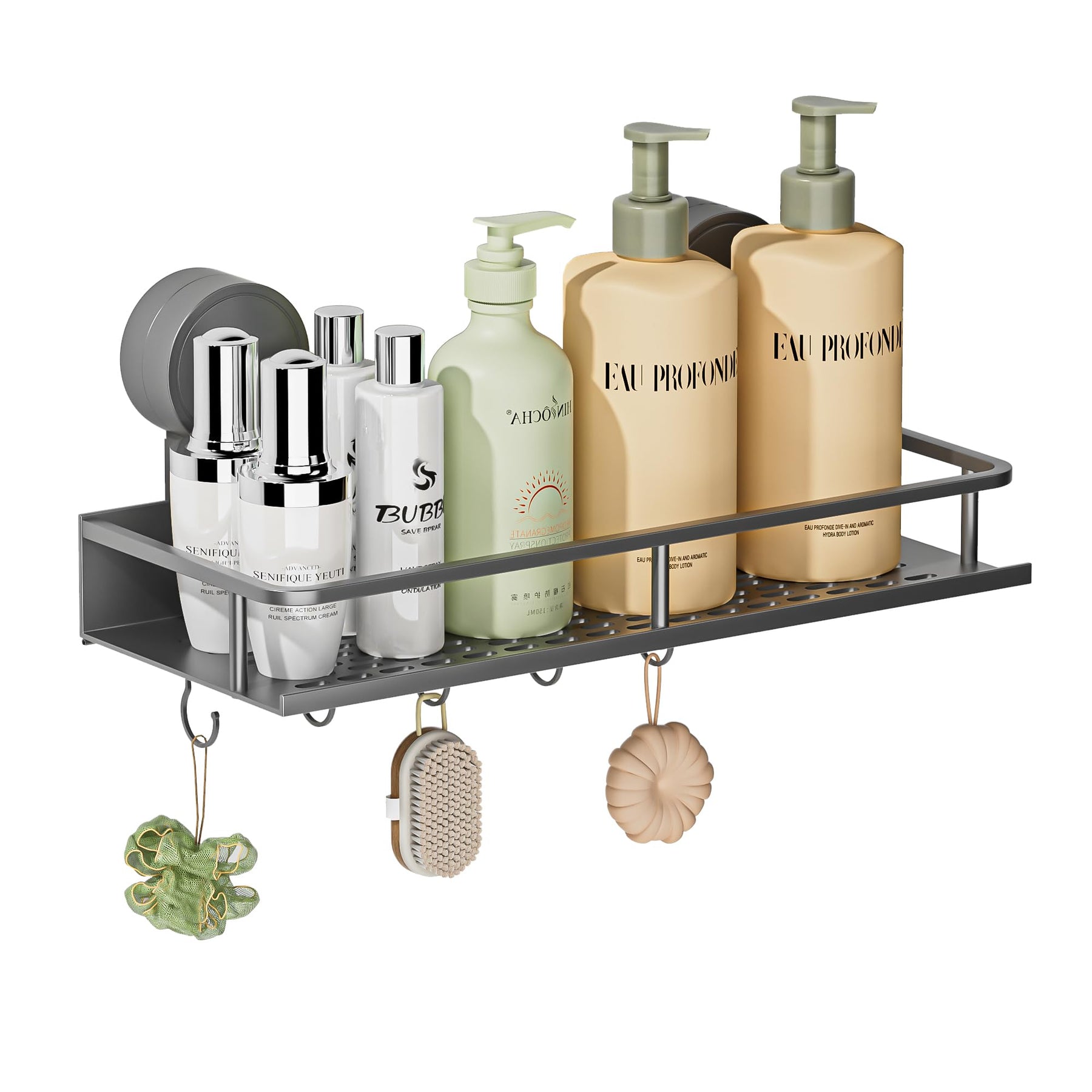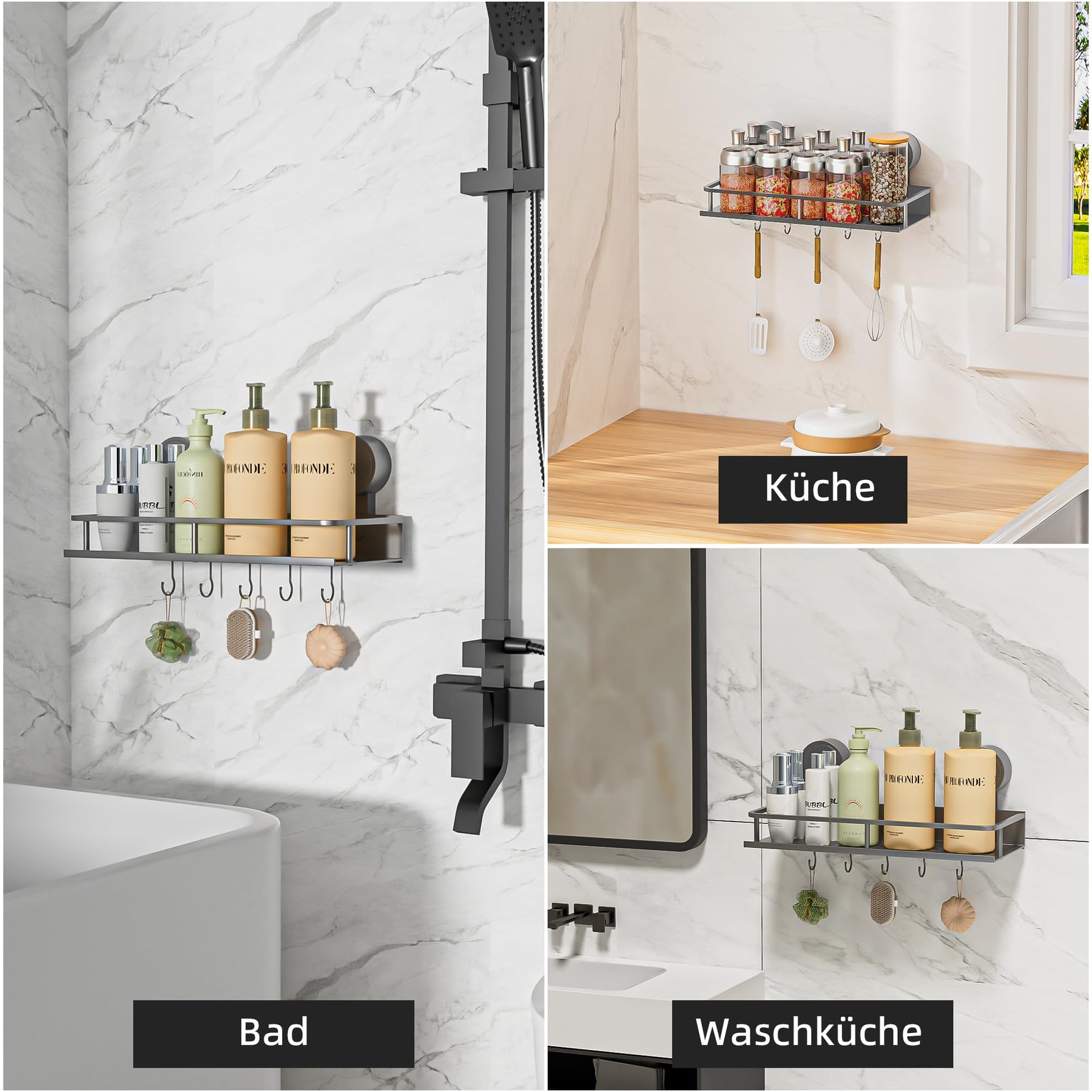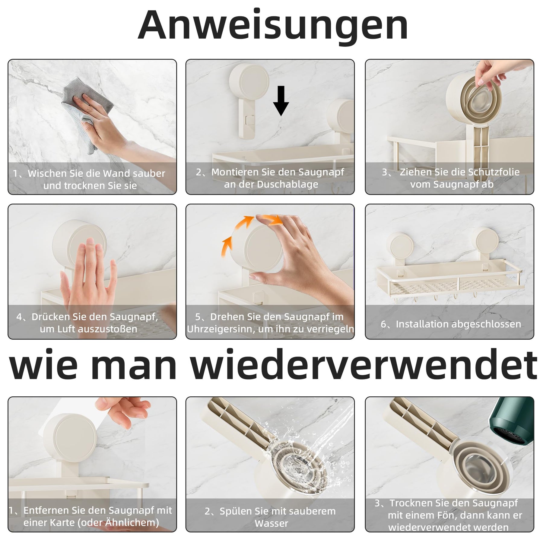 Suction Cup No Drilling Shower Shelf, 10 kg Load Capacity Bathroom Shelf for Shampoo Conditioner, Removable and Rustproof Bathroom Organiser with Large Capacity, White